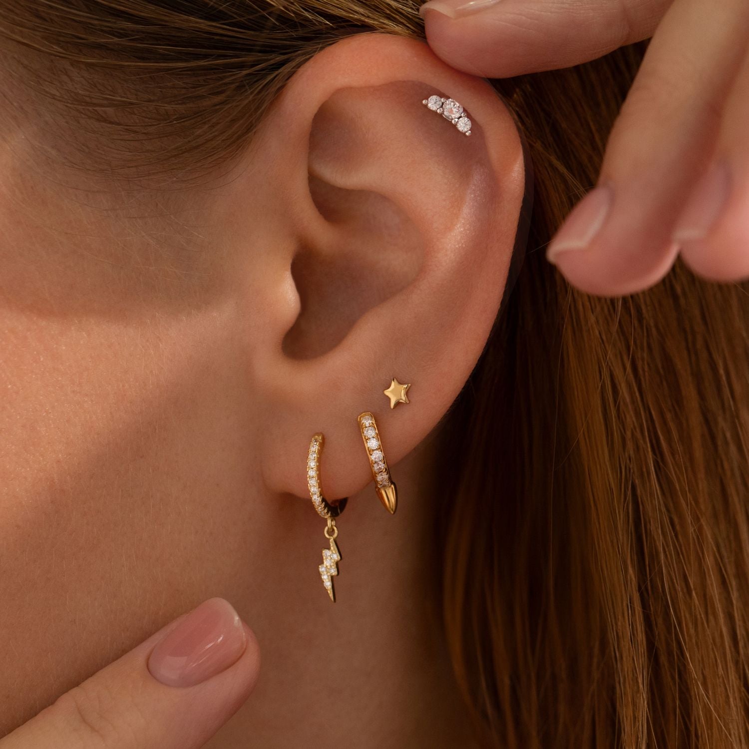 High helix – Placed at the top of the ear for a subtle, elevated look